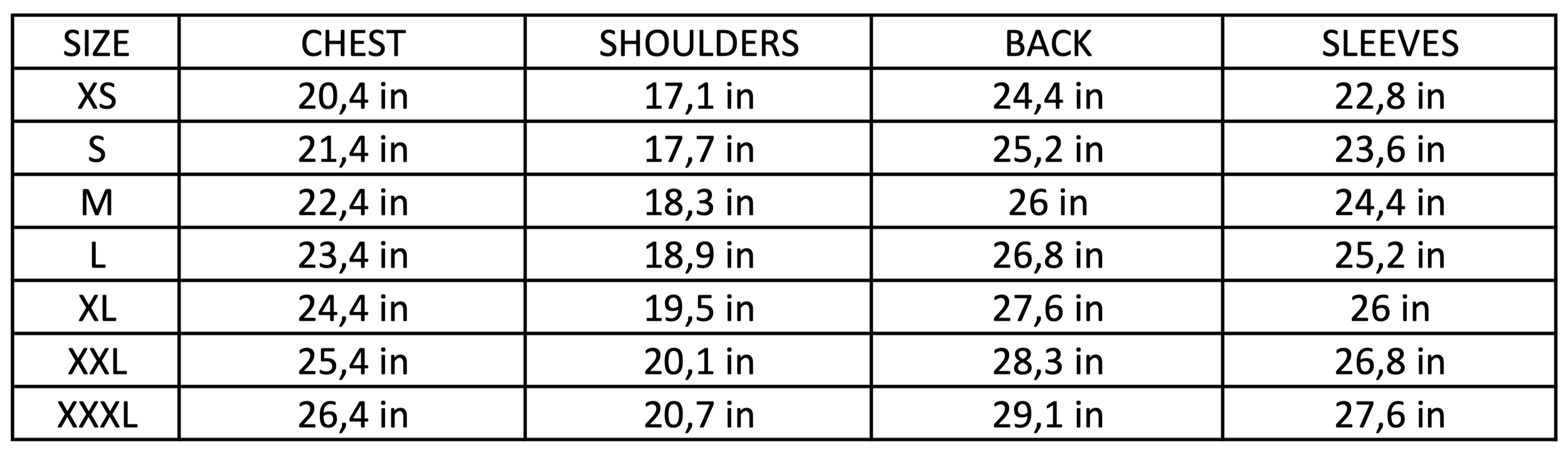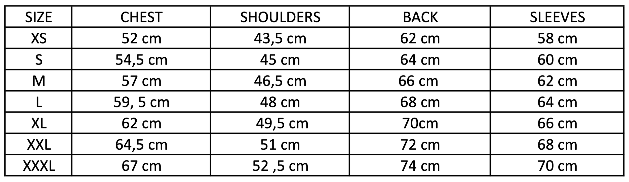 Shoulders : Measured from one shoulder seam to the other.