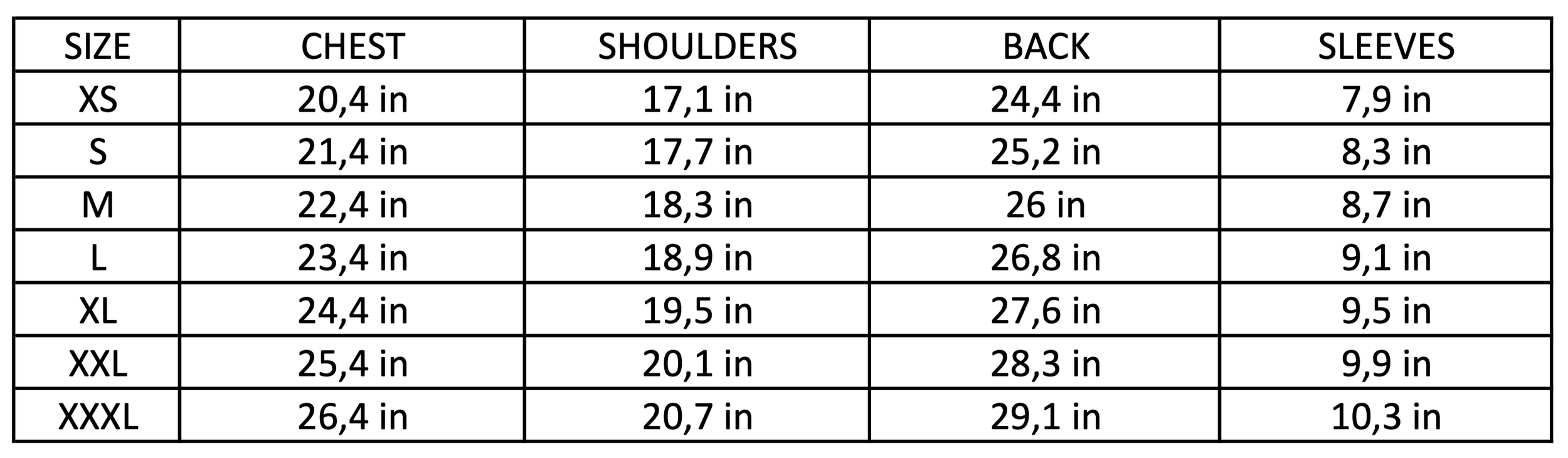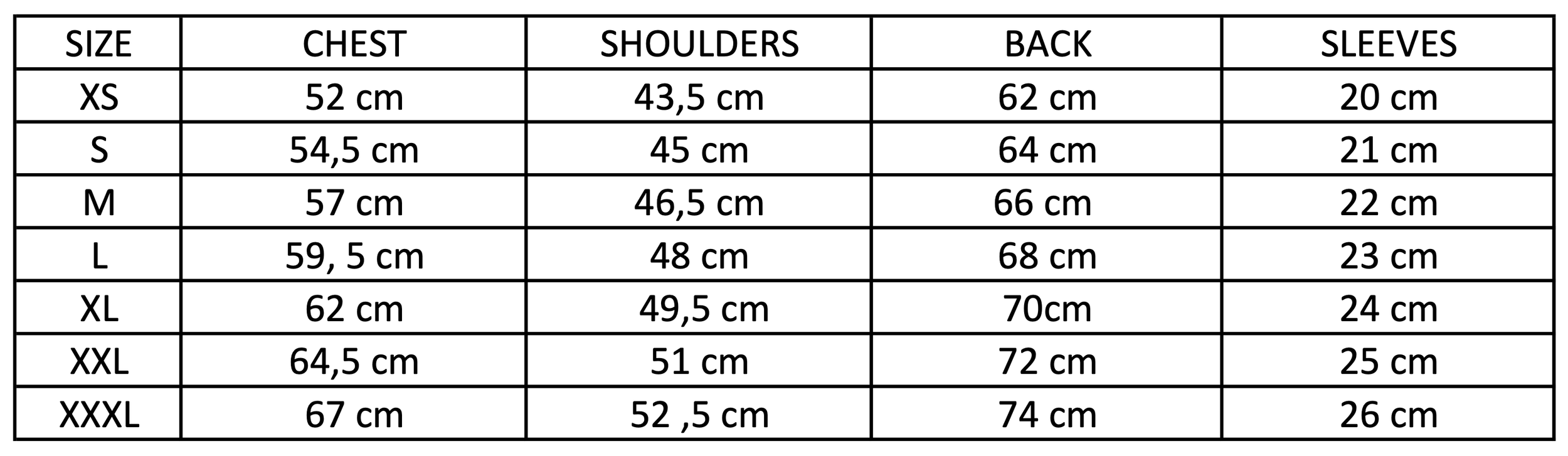 Shoulders : Measured from one shoulder seam to the other.
